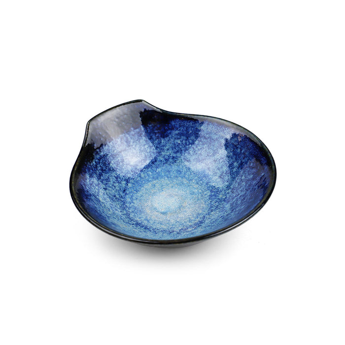 This elegant Tonsui bowl features a mesmerizing blue gradation reminiscent of the galaxy. This color hue matches cobalt grazed donabe pots, or same styled plates